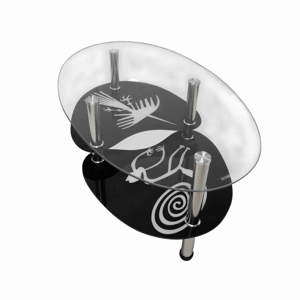 Mesa de centro con estilo moderno figura de las lineas de nazca, doble espacio, material de aluminio, vidrio templado resistente y fácil de limpiar. Ventas al por mayor a partir de 10 unidades, precios con descuentos a partir de 2 a más productos.
