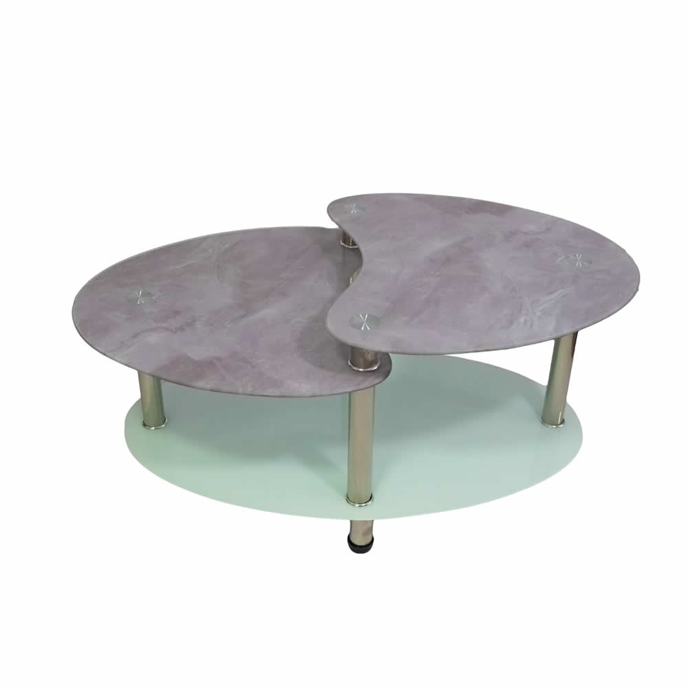 Mesa de centro con estilo moderno diseño variado, doble espacio, material de aluminio, vidrio templado resistente y fácil de limpiar. Ventas al por mayor a partir de 10 unidades, precios con descuentos a partir de 2 a más productos.